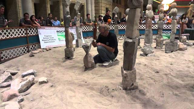 Watch in amazement as Canadian Daryl Maddeaux balances rocks and builds extreme rock towers creating gravity-defying sculptures. He will place point against point, sometimes huge rock on tiny stones without the use of glue, nails, or anything else that could hold them together. He has performed all over the world including Germany, France, Italy, Japan and the Netherlands.